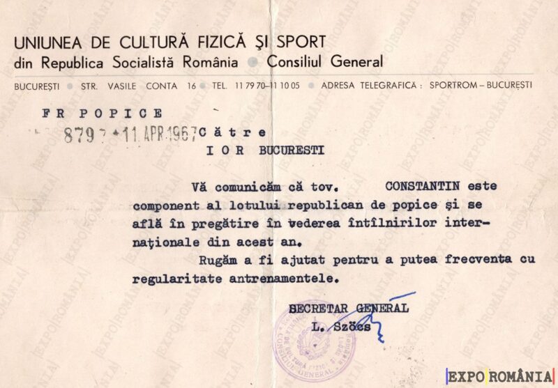 Ești aici: Prima pagină - Exponate - Acte - Act – Adeverinta de sportiv – Anii ’60