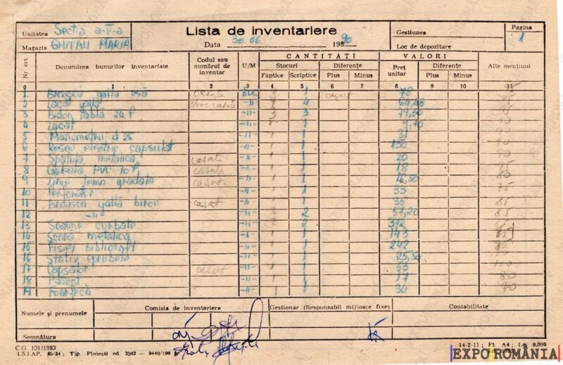 Ești aici: Prima pagină - Exponate - Acte - Act – Inventar – Anii ’80 – 05