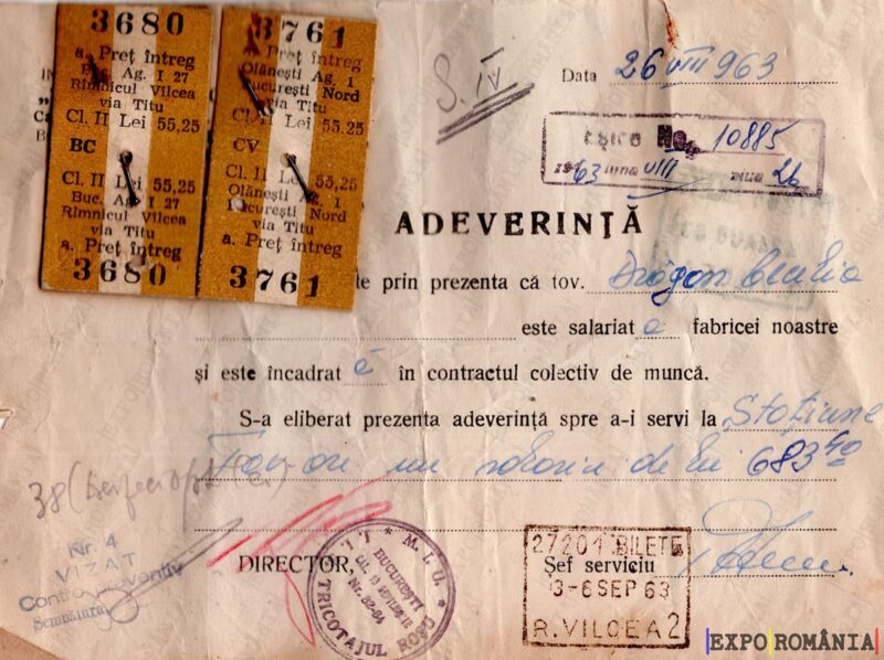 Ești aici: Prima pagină - Exponate - Acte - Adeverinta cu bilet de tren – Anii ’60 – 10