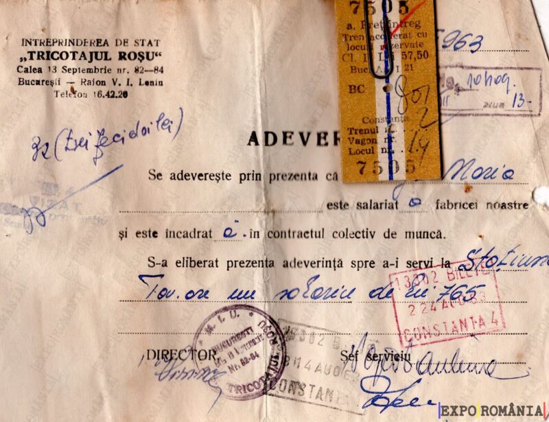 Ești aici: Prima pagină - Exponate - Acte - Adeverinta cu bilet de tren – Anii ’60 – 13