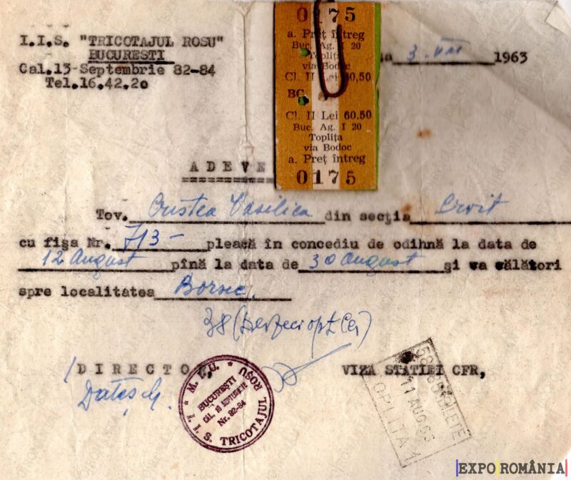 Ești aici: Prima pagină - Exponate - Acte - Adeverinta cu bilet de tren – Anii ’60 – 15