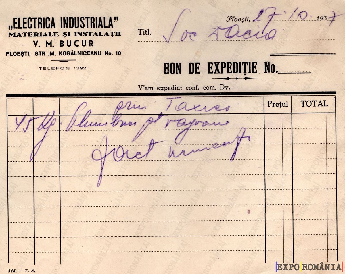 Ești aici: Prima pagină - Exponate - Acte - Bon de Expeditie – Anii ’30 – 02