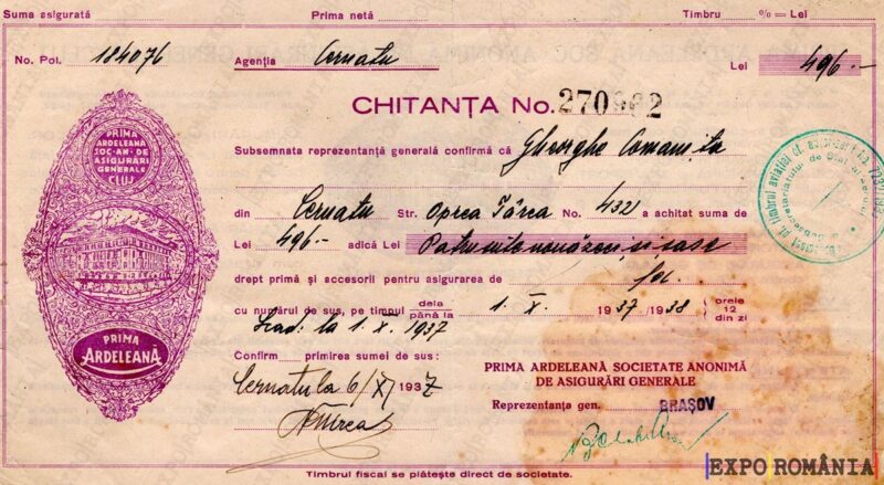 Ești aici: Prima pagină - Exponate - Acte - Chitanta – Anii ’30 – 01
