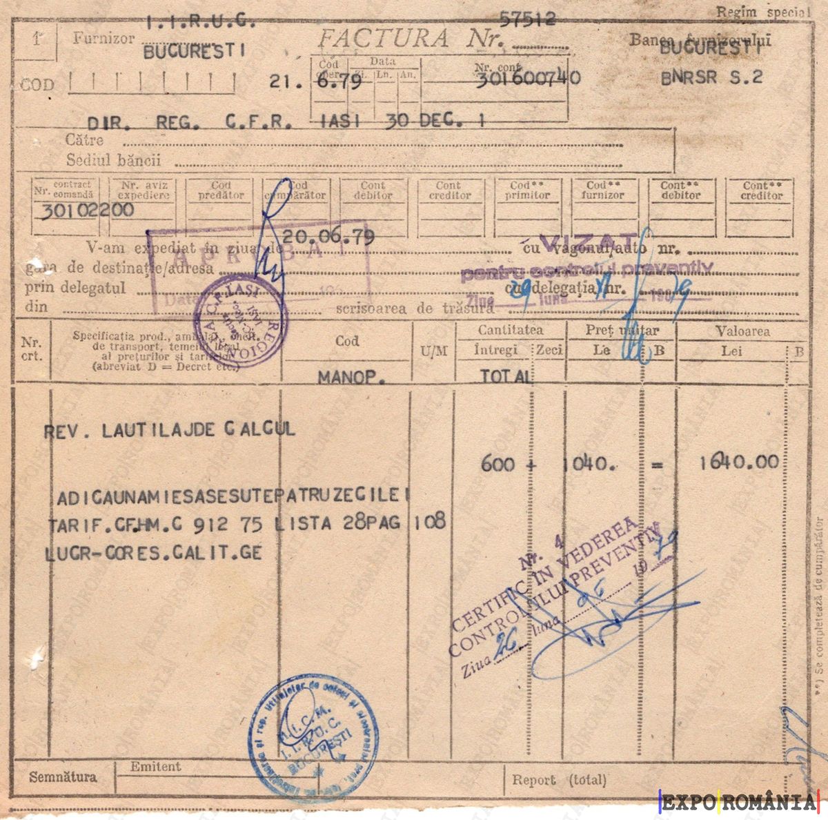Ești aici: Prima pagină - Exponate - Acte - Factura – Anii ’70 – 02