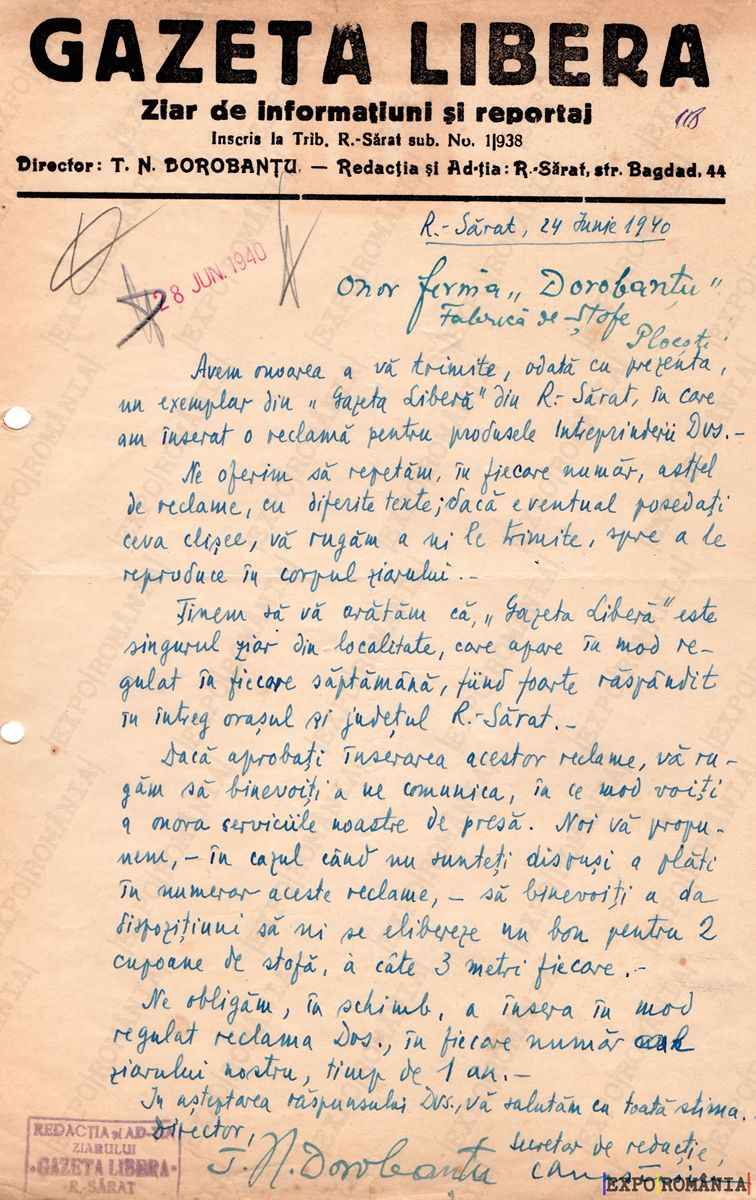Ești aici: Prima pagină - Exponate - Acte - Oferta – Anii ’40 – 03
