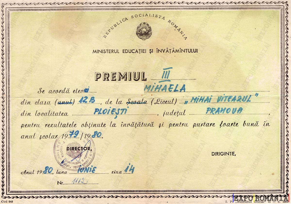 Ești aici: Prima pagină - Exponate - Acte - Premiu Scolar – Anii ’80 – 01