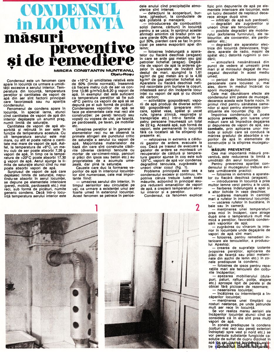 Problema principală este cea a condensului excesiv și continuu, împotriva căruia trebuie luate toate măsurile, acționînd în principal asupra reducerii emanațiilor de vapori de apă, a creșterii temperaturii aerului interior și a pereților.