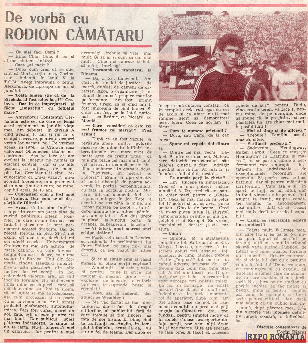 Ești aici: Prima pagină - Exponate - Articol - Interviu cu fotbalistul Rodion Camataru – anii ’80 – 0121