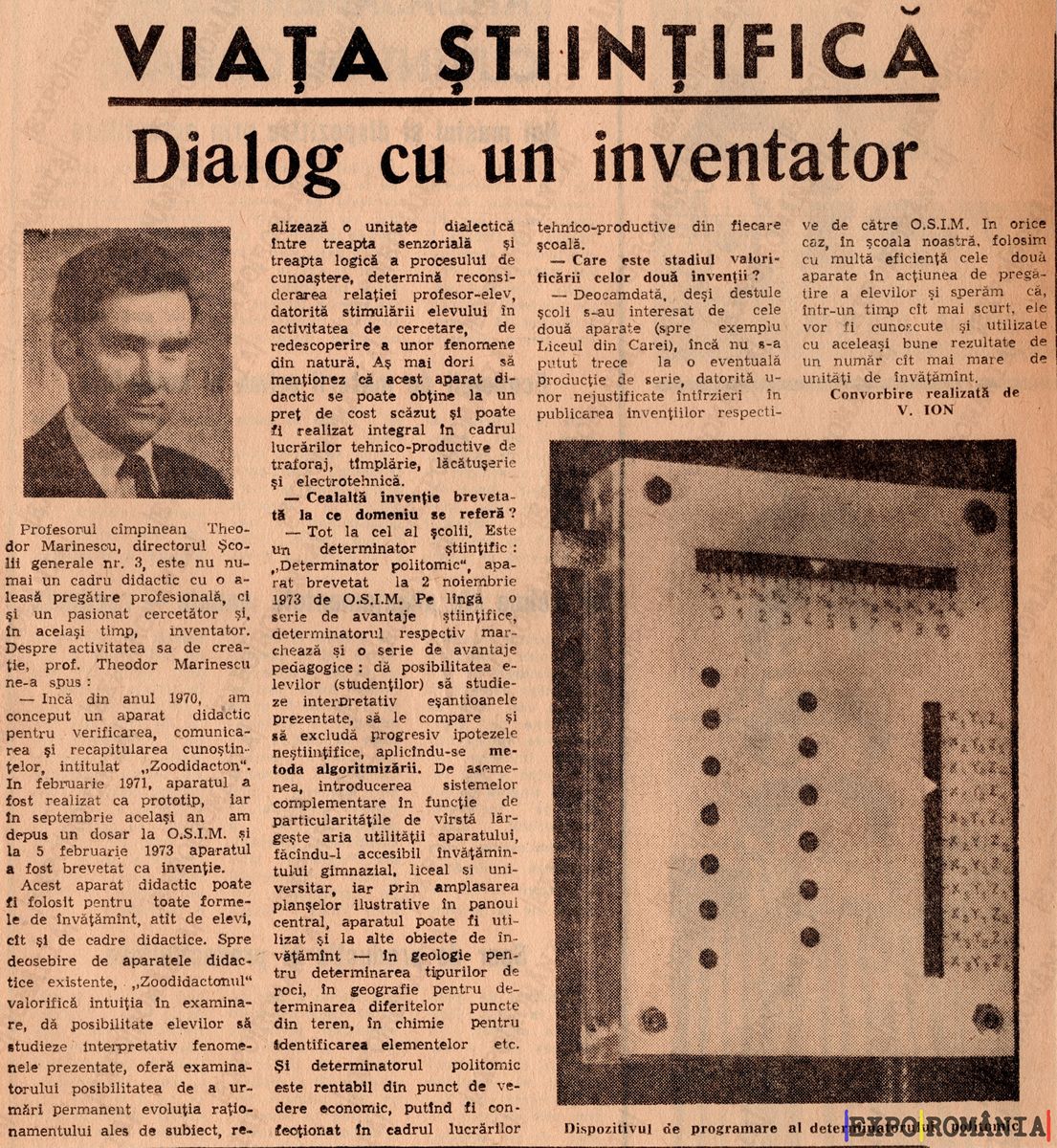 Ești aici: Prima pagină - Exponate - Articol - Interviu cu inventatorul Theodor Marinescu – anii ’70 – 0070