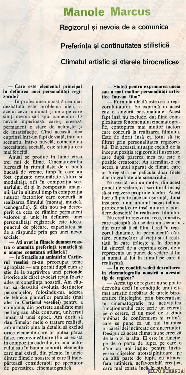 Ești aici: Prima pagină - Exponate - Articol - Interviu cu regizorul Manole Marcus – anii ’70 – 0093