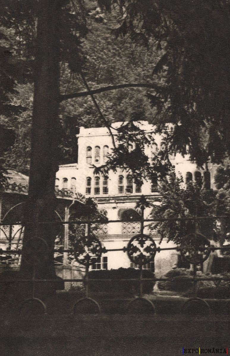 Imaginea prezintă o clădire impunătoare, situată în mijlocul unei zone verzi, cu copaci înalți care o încadrează. Clădirea are un design arhitectural distinct, cu feronerie decorativă la feronerie și feronerie la feronerie. Fațada este marcată de feronerie și feronerie, sugerând un stil elegant și rafinat. În prim-plan, se observă un gard ornamental care delimitează proprietatea, adăugând un element de intimitate și mister. Atmosfera generală este una de liniște și serenitate, evocând un sentiment de istorie și tradiție.