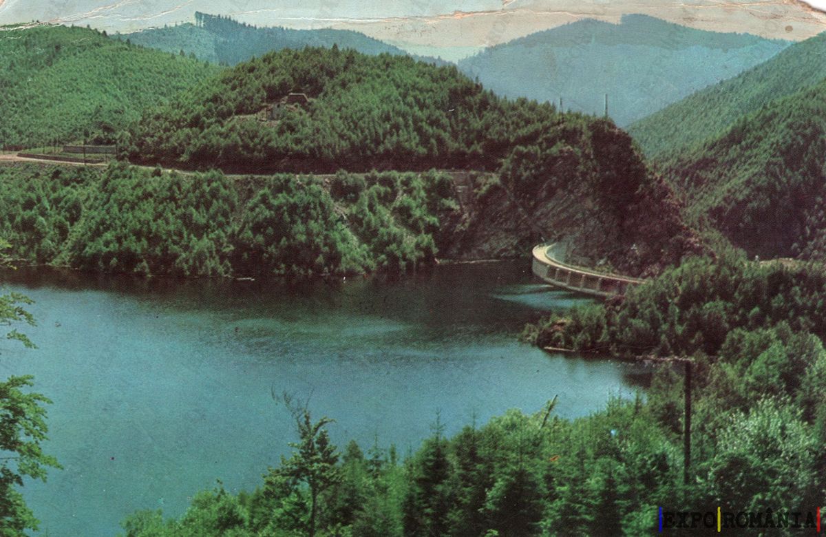Imaginea reprezintă un peisaj natural, cu un lac liniștit în prim-plan, înconjurat de coline acoperite cu vegetație densă. Apa lacului reflectă cerul, iar pe malurile acestuia se observă copaci verzi, care contribuie la atmosfera de serenitate. În fundal, se ridică dealuri împădurite, iar o serpentină de drum se conturează pe una dintre coline, sugerând accesibilitatea zonei. Lumina pare să fie blândă, creând o senzație de calm și frumusețe naturală.
