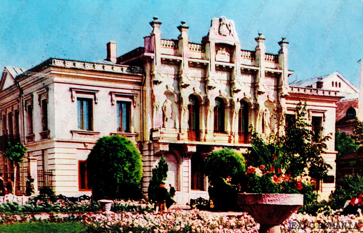 Imaginea reprezintă o clădire elegantă din București, cu un design arhitectural distinctiv. Fațada este decorată cu detalii ornamentale, inclusiv statui și motive florale, care adaugă un aer sofisticat. Clădirea are feronerie elaborată și feronerie la feronerie, iar feroneria este amplasată pe un fundal de plante verzi și flori colorate. Grădina din față este bine îngrijită, cu aranjamente florale care completează frumusețea clădirii. Atmosfera generală sugerează un loc deosebit, plin de istorie și cultură.