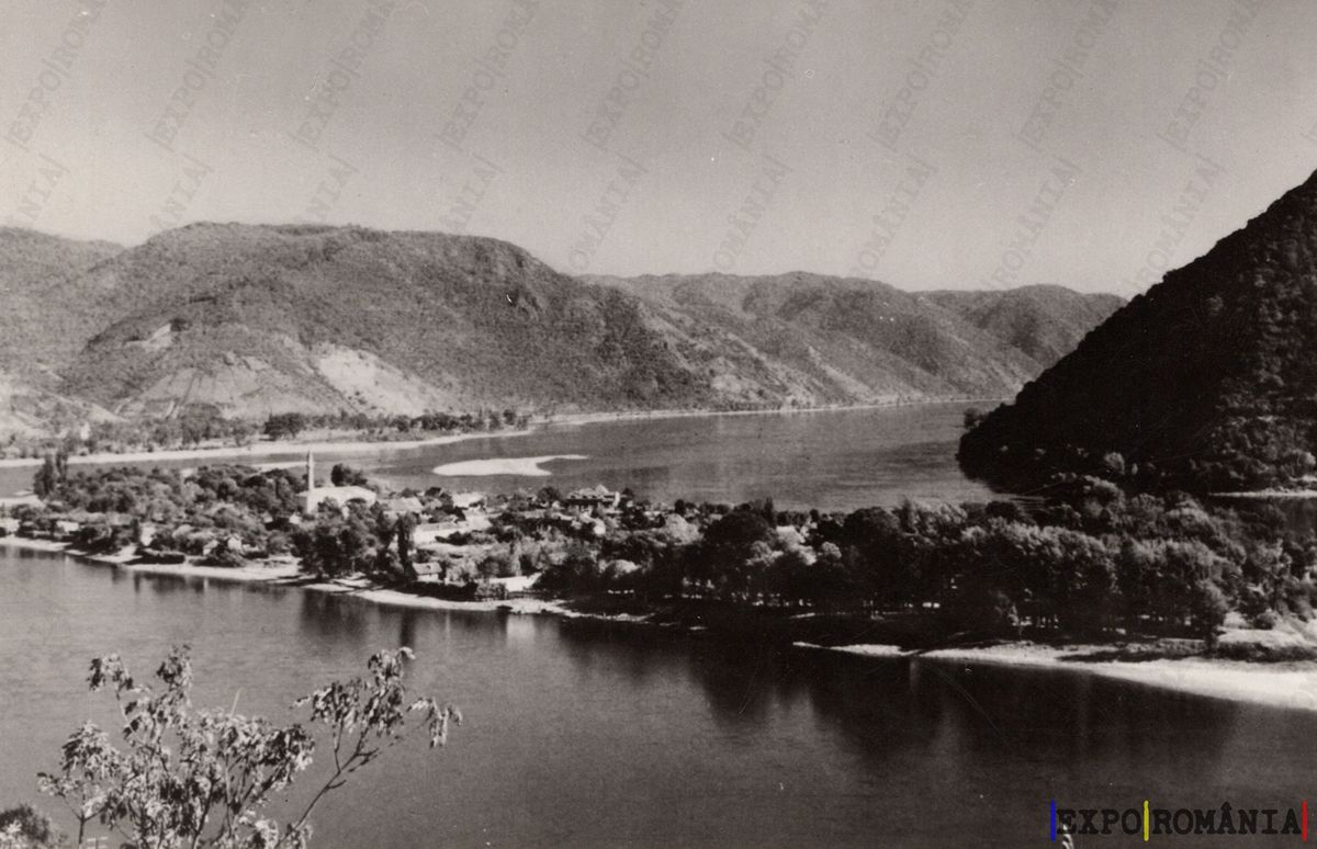 Imaginea prezintă un peisaj natural, cu un râu care curge lin printre dealuri acoperite de vegetație. În prim-plan, se observă o zonă de mal cu copaci și o așezare mică, cu case dispersate. Dealurile din fundal sunt înalte și ondulate, iar cerul este senin, sugerând o atmosferă liniștită. Reflexiile apei în râu adaugă un sentiment de calm și serenitate peisajului. Această scenă evocă frumusețea naturală a regiunii.