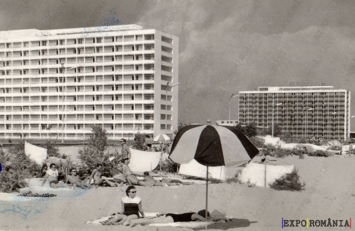 Imaginea prezintă o plajă urbană din București, cu două clădiri înalte vizibile în fundal. În prim-plan, se observă mai multe persoane relaxându-se pe nisip, unele stând întinse pe prosoape, iar altele stând sub umbrele. O umbrelă mare, cu dungi alb-negru, oferă umbră unei persoane care se odihnește. Atmosfera sugerează o zi însorită, iar peisajul urban este completat de vegetație sporadică și de structuri moderne ale clădirilor din spate. Această imagine evocă o combinație între relaxare și viața urbană din București.