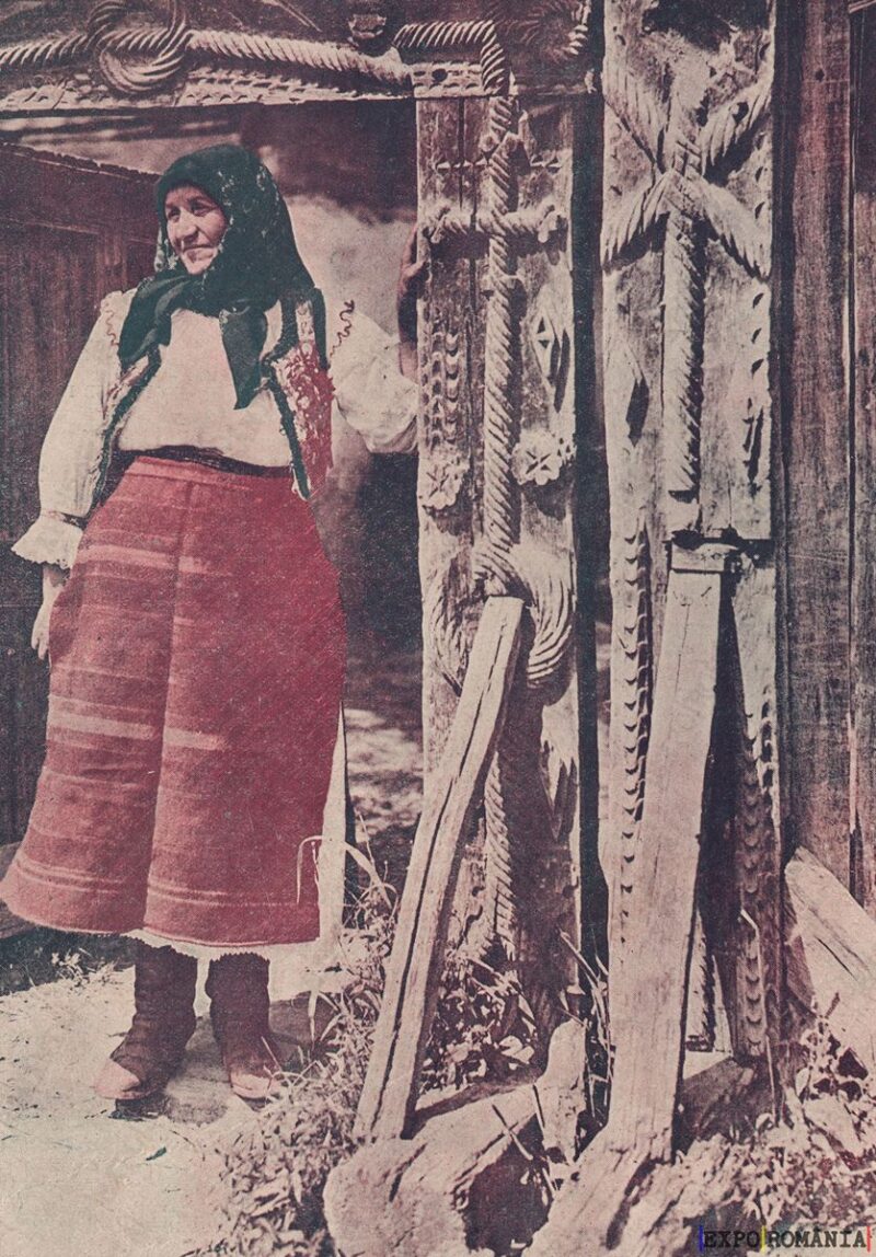 Ești aici: Prima pagină - Exponate - Diverse - Maramures – Femeie in port popular la poarta – Anii ’20