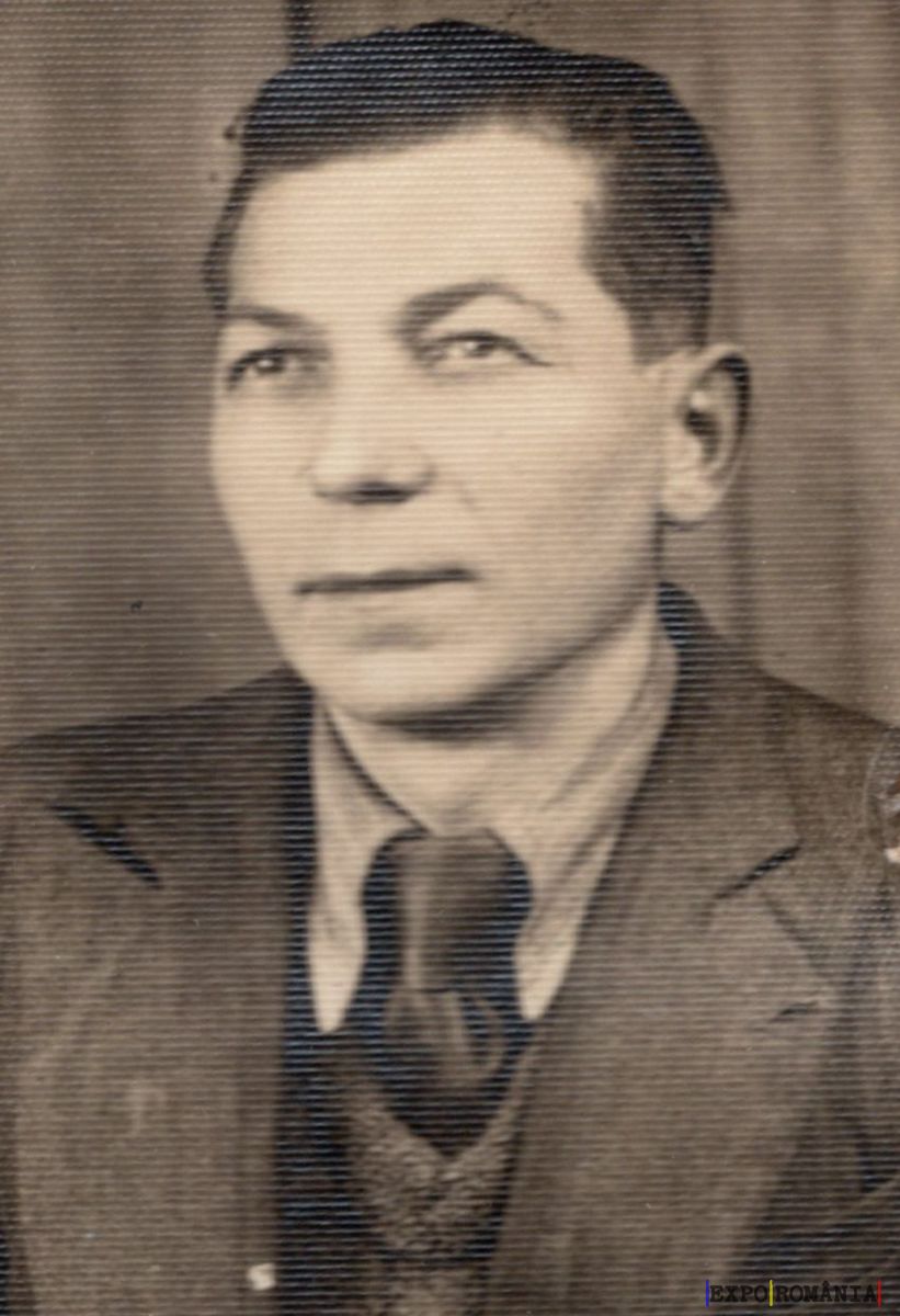 Imaginea prezintă un portret alb-negru al unui bărbat tânăr. El are părul scurt și sprâncenele groase. Bărbatul poartă un costum format din sacou, cămașă și vestă, iar la gât are o cravată. Fundalul este neutru, fiind format dintr-o perdea sau un material simplu. Fotografia pare a fi realizată în stilul anilor de la începutul secolului XX.