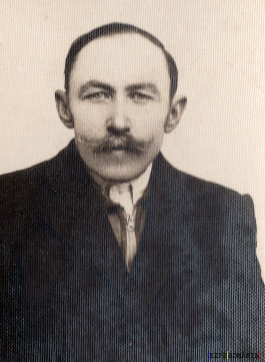 Imaginea prezintă un bărbat matur, îmbrăcat într-un costum formal de culoare închisă. Poartă o cămașă albă sub sacou și are o mustață proeminentă. Părul său este scurt și are urechi mari. Fundalul imaginii este simplu și neutru, posibil gri sau alb, care pune accentul pe persoana fotografiată. Aceasta pare a fi o fotografie veche, alb-negru sau în tonuri de sepia.