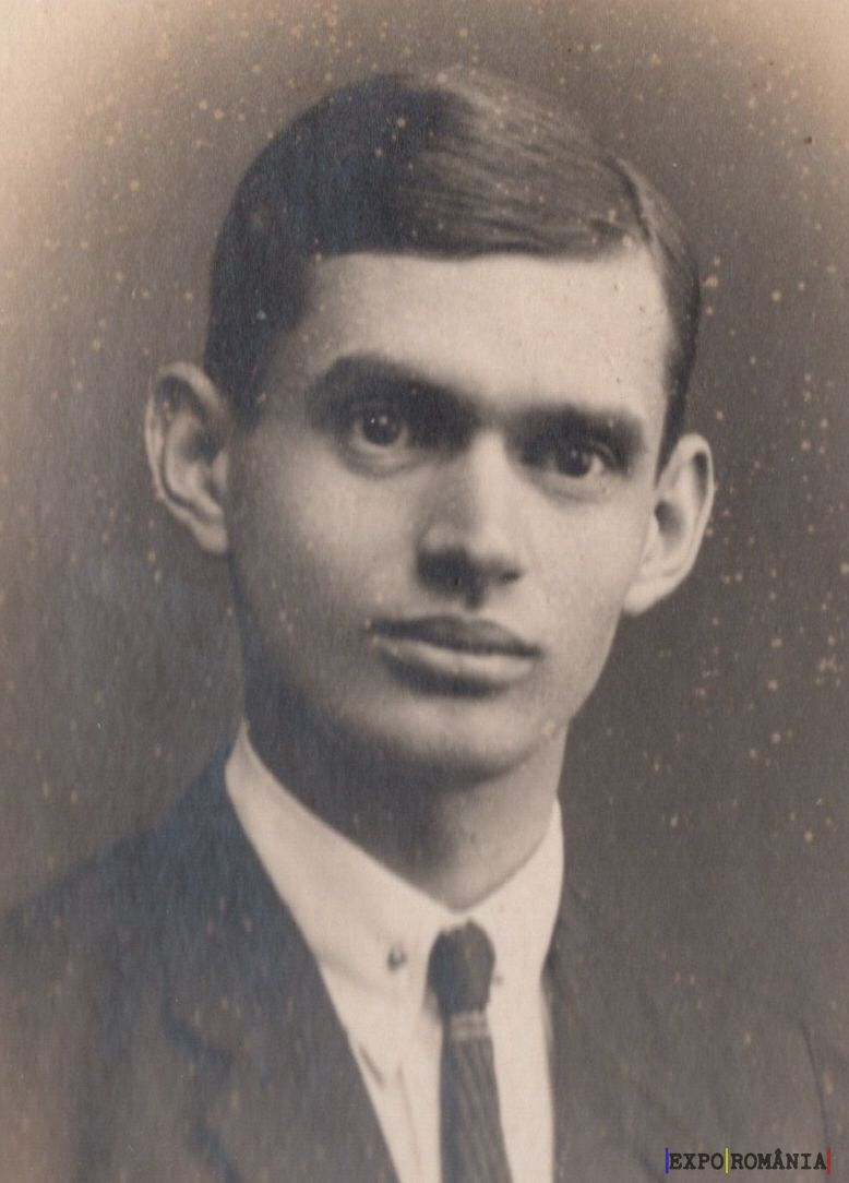În imagine este un portret alb-negru al unui tânăr. Acesta poartă un costum, la care are asortată o cravată. Parul său este scurt și pieptănat cu o cărare pe o parte. Fundalul este simplu, cu o textură care sugerează vechimea fotografiei.