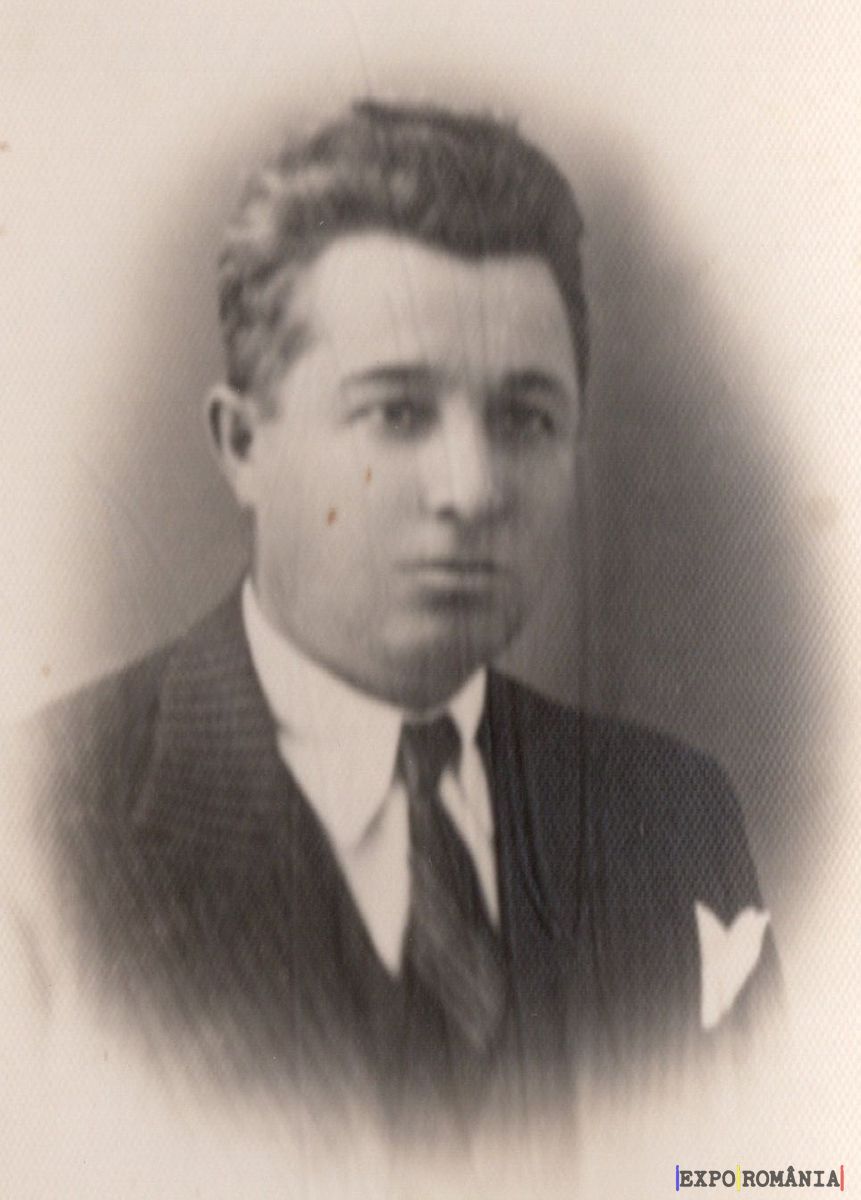 Imaginea prezintă un portret alb-negru al unui bărbat. Acesta poartă un costum complet format dintr-un sacou și o cravată. Fața bărbatului are o expresie neutră și părul este ondulat și aranjat. În buzunarul sacoului se observă o batistă. Fotografia are un efect de vignetare, care estompează marginile, concentrând atenția asupra chipului bărbatului. Imaginea are un aspect clasic, posibil realizată în prima jumătate a secolului XX.