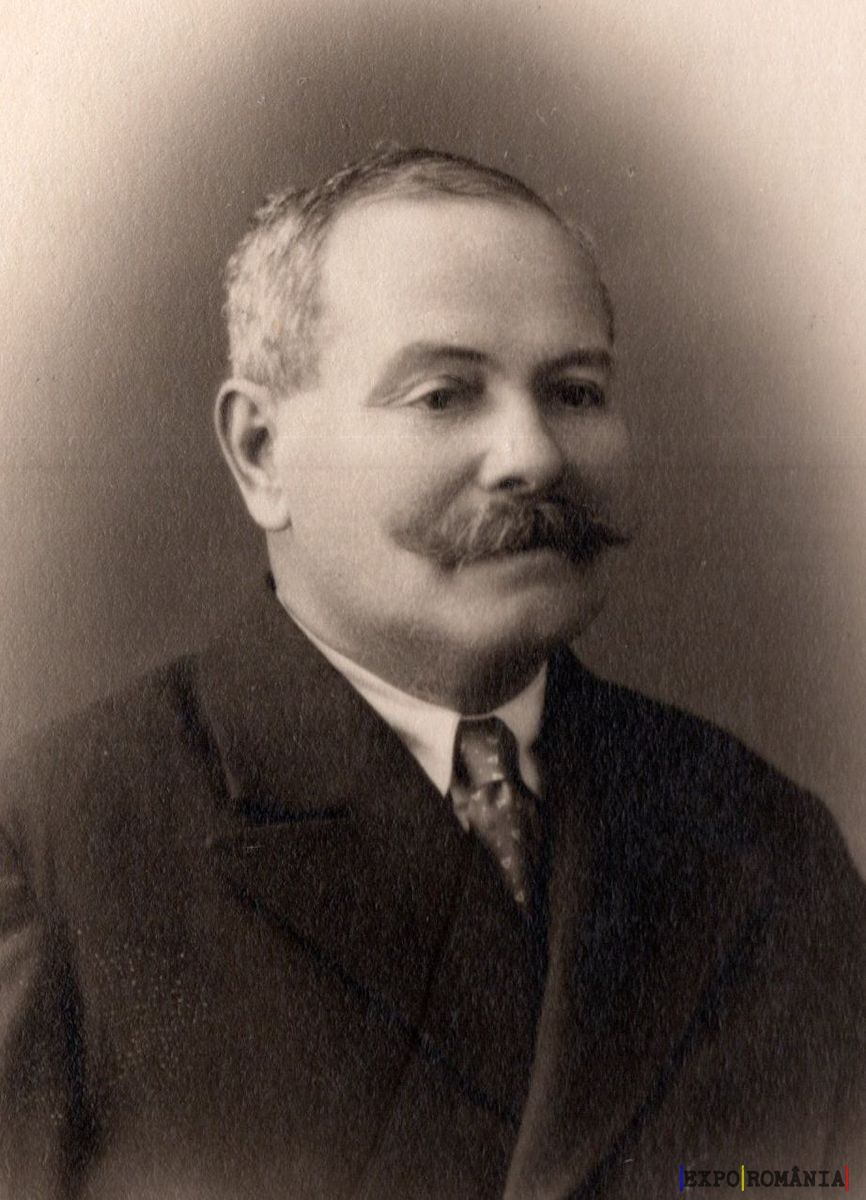 Imaginea prezintă un bărbat matur cu părul scurt și mustață, îmbrăcat într-un costum formal, compus dintr-un sacou și o cravată sau papion. Fotografia este alb-negru și pare a fi realizată într-un studio foto, dat fiind fundalul simplu și iluminarea uniformă. Bărbatul are o expresie serioasă și privește ușor spre dreapta. Stilul fotografiei indică o perioadă istorică mai veche.