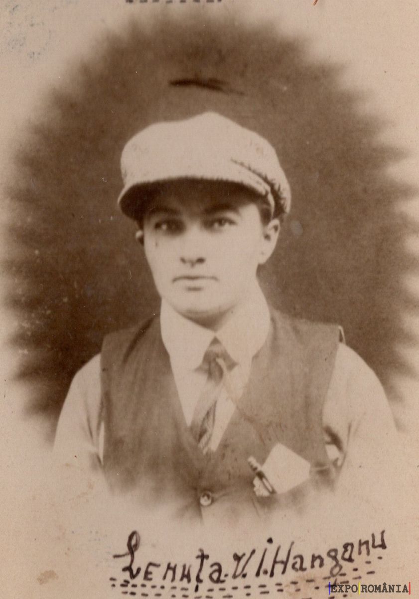 Imaginea prezintă o fotografie vintage sepia a unei persoane purtând o șapcă și o vestă peste o cămașă cu cravată. Fotografia pare a fi de tip portret. Sub imagine este scris, de mână, un text care poate include numele persoanei și alte informații relevante. Fundalul este unul estompat, concentrând atenția asupra persoanei din fotografie.