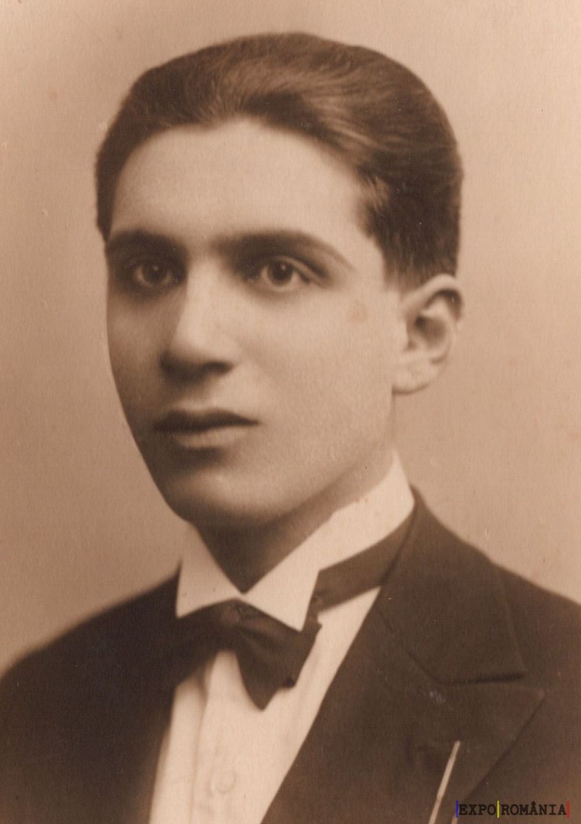 Imaginea prezintă un portret vechi, sepia, al unui tânăr. Persoana din fotografie poartă un costum formal, cu o cămașă albă și un papion negru. Are părul scurt și este aranjat cu grijă. Expresia facială este serioasă, iar fundalul este simplu, fără detalii notabile. Fotografia pare să fi fost realizată într-un studio fotografic.