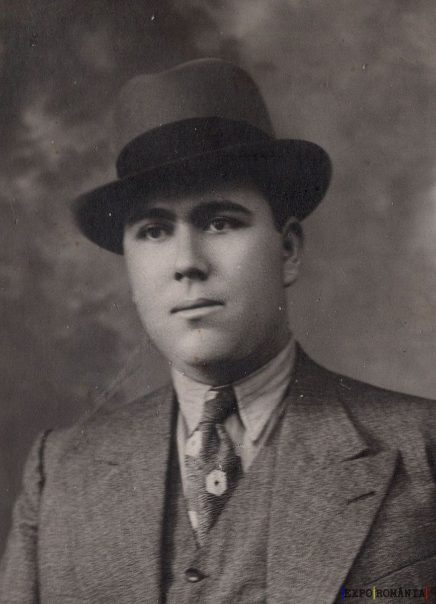 Imaginea prezintă un bărbat îmbrăcat într-un costum elegant, alcătuit dintr-un sacou, vestă și cămașă cu cravată. Pe cap poartă o pălărie de tip fedora. Fotografia este de tip portret, alb-negru, și pare să fie realizată într-un stil clasic, specific începutului sau mijlocului secolului al XX-lea. Fundalul este neutru, ceea ce pune în evidență figura subiectului.