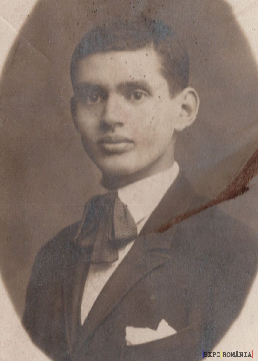 Imaginea prezintă un portret alb-negru al unui bărbat tânăr, purtând un costum elegant, completat de o cravată tip papion și o batistă în buzunarul de la piept. Fundalul este uniform, iar fotografia pare a fi veche, având un aspect vintage. Bărbatul are o expresie serioasă și privește direct către obiectivul camerei.