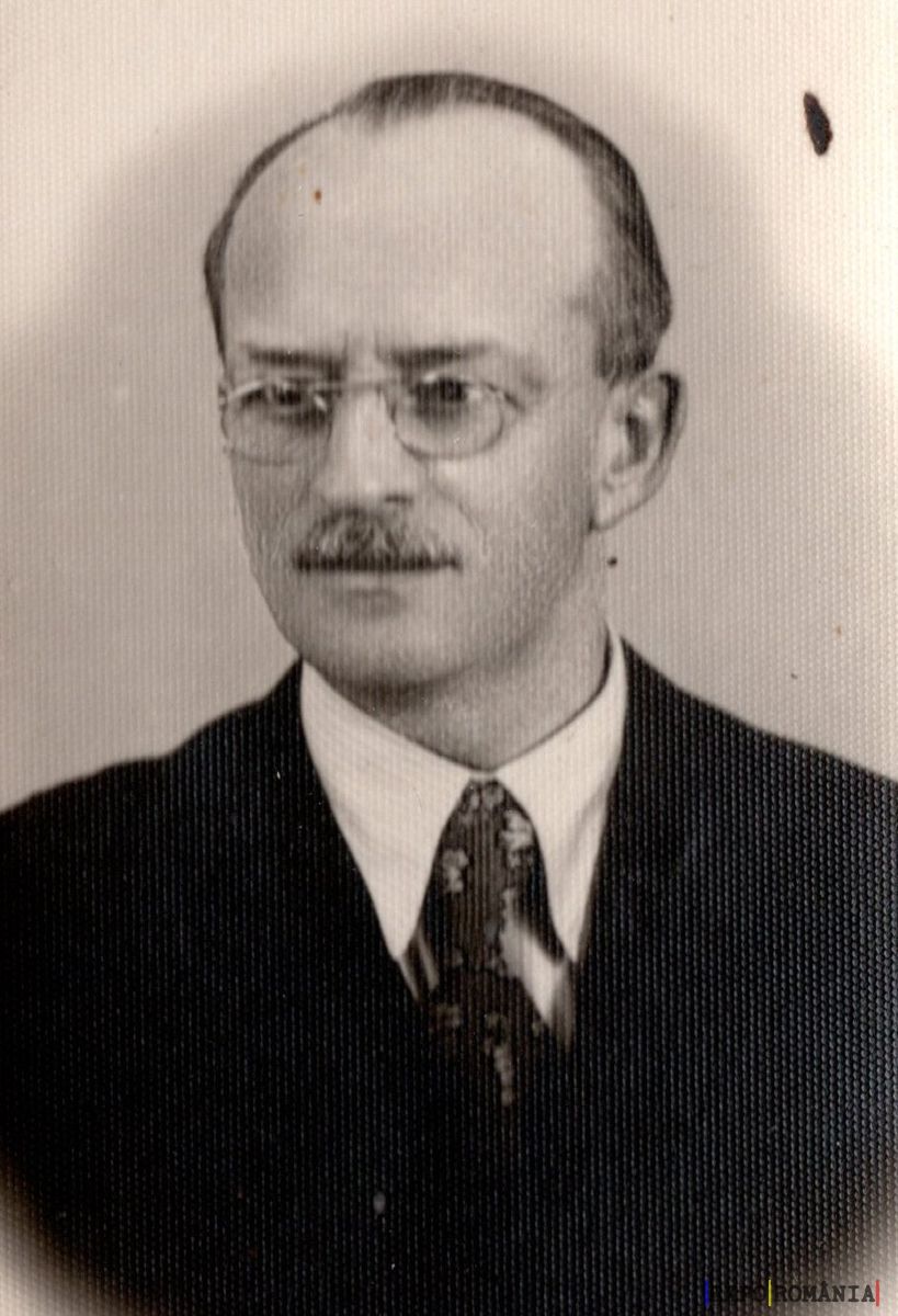 Imaginea prezintă un bărbat matur, purtând ochelari. Are părul scurt și se observă că este pieptănat cu cărare pe mijloc. Este îmbrăcat într-o cămașă albă, cravată și un sacou formal de culoare închisă. Pe chipul său apare o expresie serioasă, iar bărbatul are o mustață subțire. Fotografia pare a fi una de tip portret, făcută într-un cadru neutru.