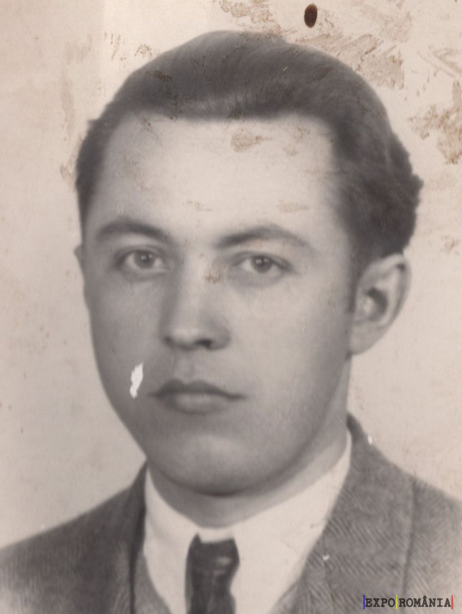 Este o fotografie alb-negru a unui bărbat tânăr. Poartă un costum și o cămașă cu cravată. Părul său este aranjat într-un stil elegant, cu un pic de volum în partea de sus. Fundalul imaginii este simplu și neornamentat, iar fotografia pare a fi puțin uzată, având câteva pete și zgârieturi pe suprafața sa.