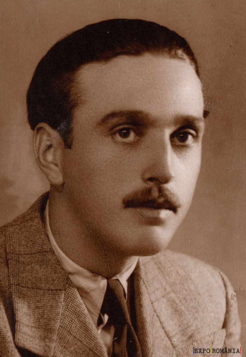 Imaginea prezintă un bărbat tânăr care poartă un costum și cravată. Are părul pieptănat pe spate și o mustață bine îngrijită. Fundalul este simplu și monoton, iar fotografia are un aspect sepia, sugerând că ar putea fi veche. Uitătura bărbatului este una serioasă și expresivă.