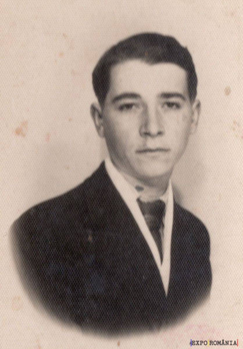 Imaginea prezintă un portret alb-negru al unui tânăr bărbat. Acesta poartă un costum elegant, alcătuit dintr-un sacou negru și o cămașă albă, accesorizată cu o cravată închisă la culoare. Bărbatul are părul scurt și aranjat, iar expresia feței sale este serioasă. Fundalul este simplu, fără detalii, punând astfel în evidență trăsăturile personajului portretizat.