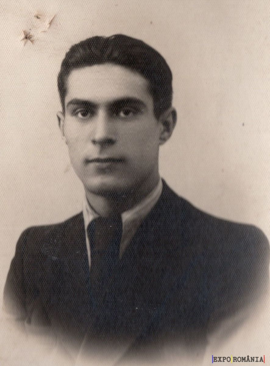 Fotografia este un portret alb-negru al unui bărbat tânăr. Acesta poartă un costum elegant, cu cravată și cămașă. Părul său este pieptănat ordonat înspre spate. Expresia feței este serioasă și atentă, iar fundalul imaginii este simplu, fără detalii, concentrând atenția asupra subiectului.