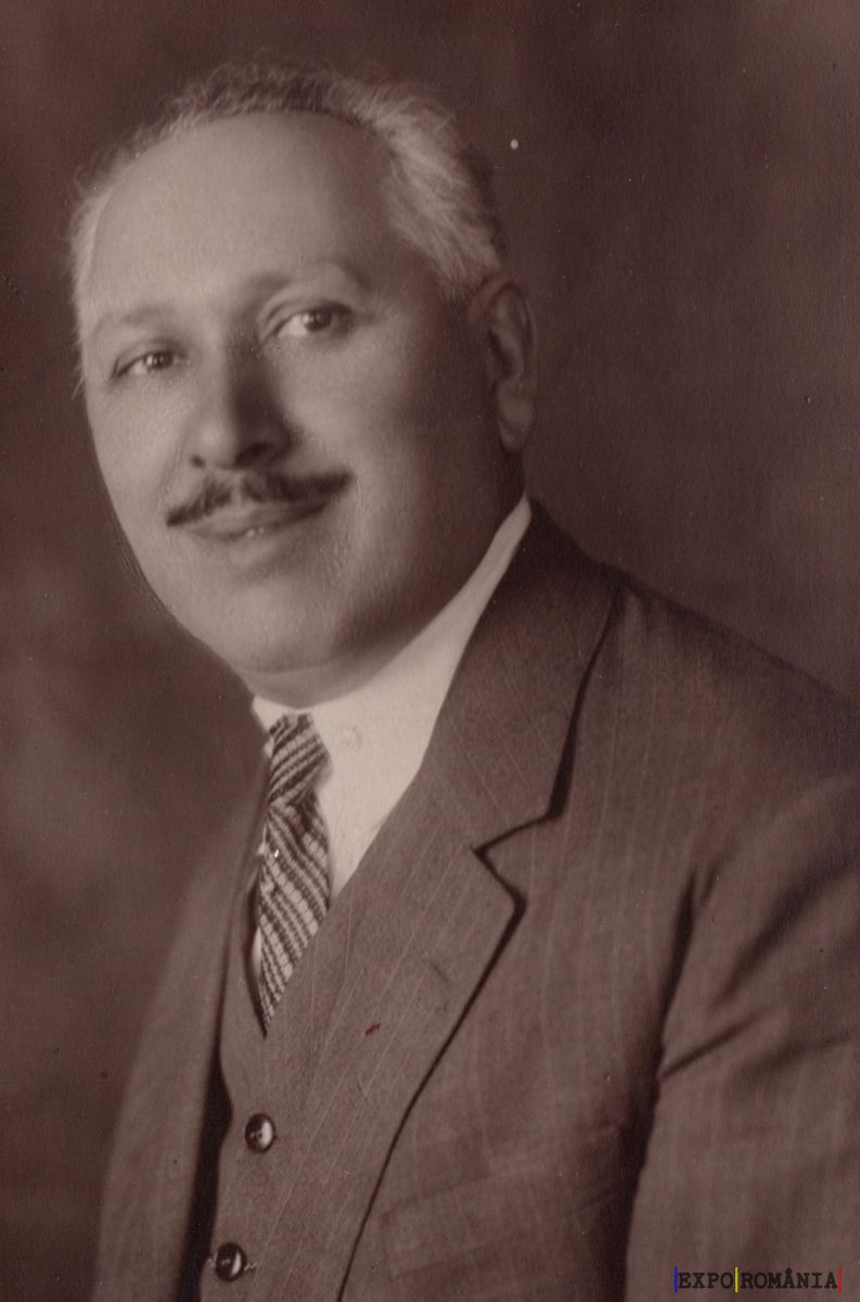 Imaginea prezintă un bărbat matur, îmbrăcat în costum formal. Poartă un sacou de culoare închisă, o vestă și o cravată cu model în dungi. Bărbatul are părul scurt, cărunt și mustață. Expresia feței lui este neutră spre zâmbitoare. Fundalul este simplu și de culoare uniformă, probabil pentru a atrage atenția asupra subiectului principal al fotografiei. Imaginea pare a fi una clasică, de epocă.
