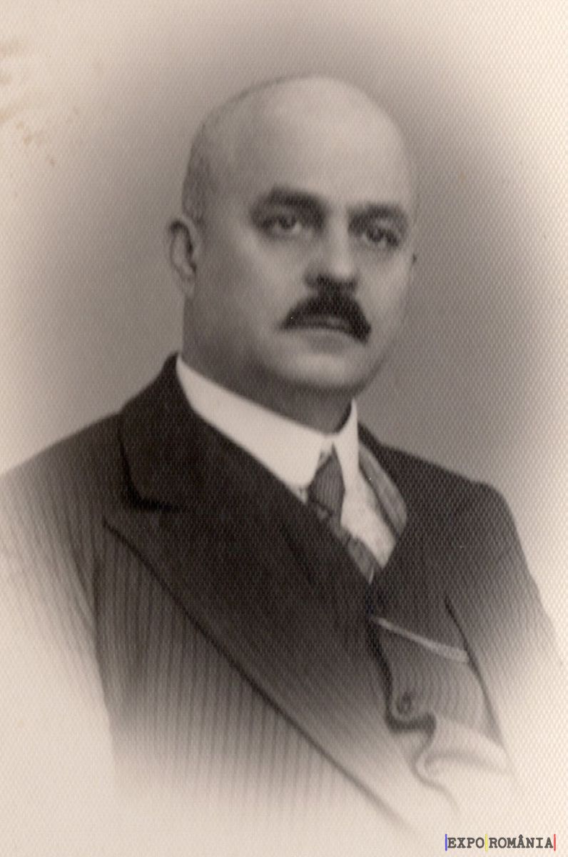 Imaginea prezintă un bărbat care poartă un costum formal. Are părul tuns scurt și este chel pe partea de sus a capului. Mustața este îngrijită și densă. Bărbatul poartă un sacou cu dungi fine, cămașă albă și o cravată. Expresia feței sale este serioasă, iar fundalul este simplu. Imaginea pare a fi realizată în stilul fotografiei vechi de studio, sugerând că este posibil să fie o fotografie dintr-o perioadă mai veche.
