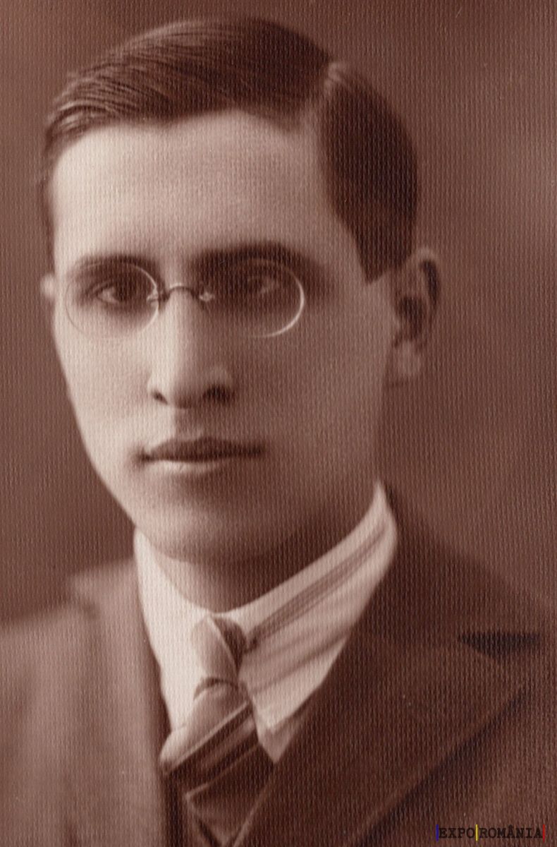 Imaginea prezintă un portret alb-negru al unui bărbat tânăr purtând ochelari. Bărbatul poartă un costum elegant, cu o cămașă albă și o cravată. Stilul vestimentației și calitatea fotografiei indică faptul că imaginea ar fi fost realizată în prima jumătate a secolului 20. Bărbatul are părul scurt și este pieptănat într-o parte, iar expresia sa este serioasă. Fundalul este simplu și uniform, fără elemente care să distragă atenția, concentrând astfel privirea asupra subiectului principal.