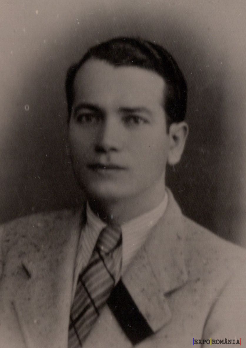 Imaginea prezintă un portret alb-negru al unui bărbat tânăr. Acesta are părul închis la culoare, pieptănat spre spate, și poartă un costum elegant, cu o cravată în dungi. Privirea sa este îndreptată ușor spre dreapta și are o expresie serioasă. Fundalul este uniform, fără detalii distincte, punând în evidență figura persoanei.