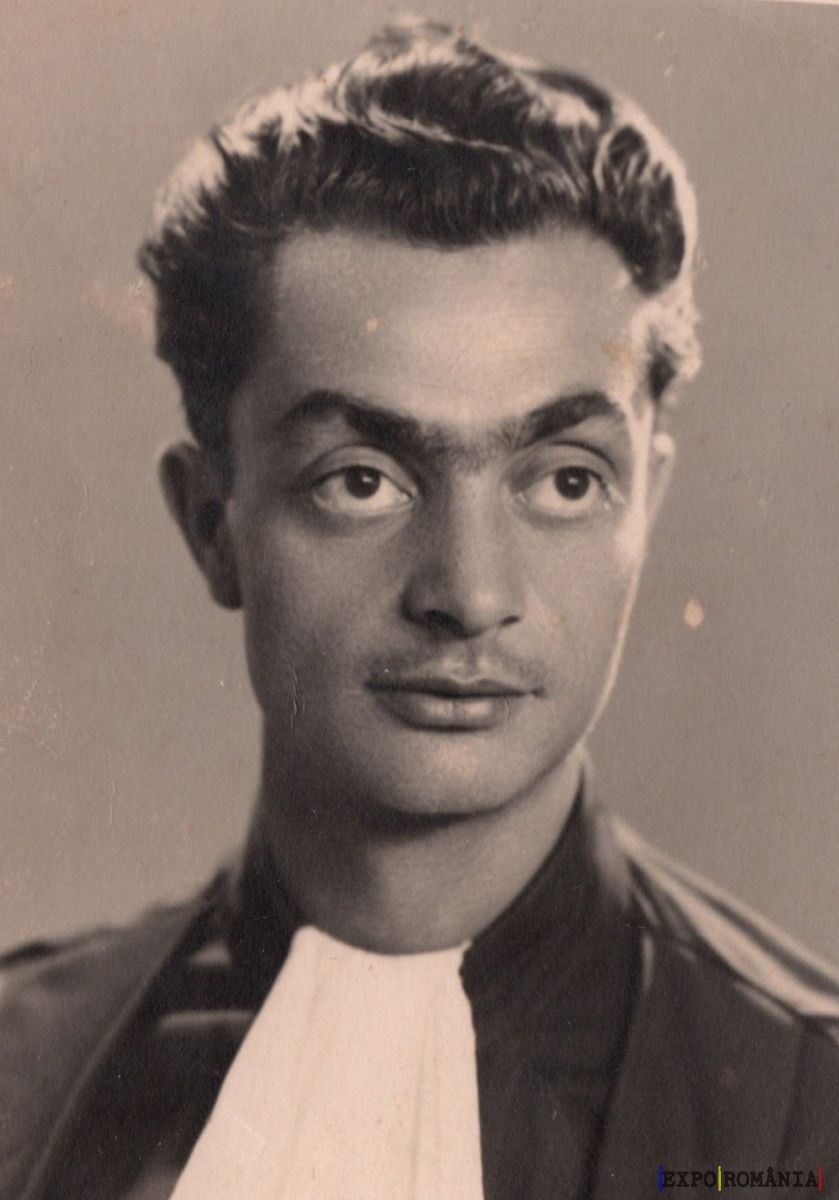 Imaginea prezintă un portret alb-negru al unui bărbat tânăr. Bărbatul are părul scurt și ondulat, stilizat elegant. Are o expresie serioasă și poartă o robă neagră cu un guler alb distinctiv, similar cu ceea ce ar purta un avocat sau un judecător. Fundalul este simplu și de culoare deschisă. Fotografia pare veche, posibil realizată în mijlocul secolului 20, având în vedere stilul vestimentar și calitatea imaginii.
