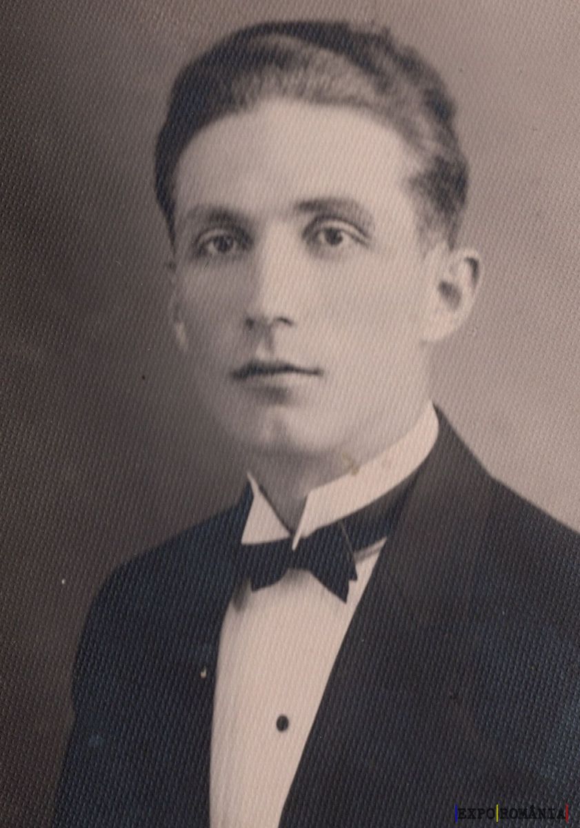 Imaginea este un portret alb-negru al unui bărbat tânăr. El poartă un costum elegant, cu o cămașă albă și papion negru. Părul este aranjat spre spate, iar bărbatul păstrează o expresie serioasă, privindu-l pe cel care face fotografia. Fundalul este simplu, nedecorat, pentru a menține atenția asupra subiectului. Stilul fotografiei sugerează că ar putea fi realizată în prima jumătate a secolului XX.