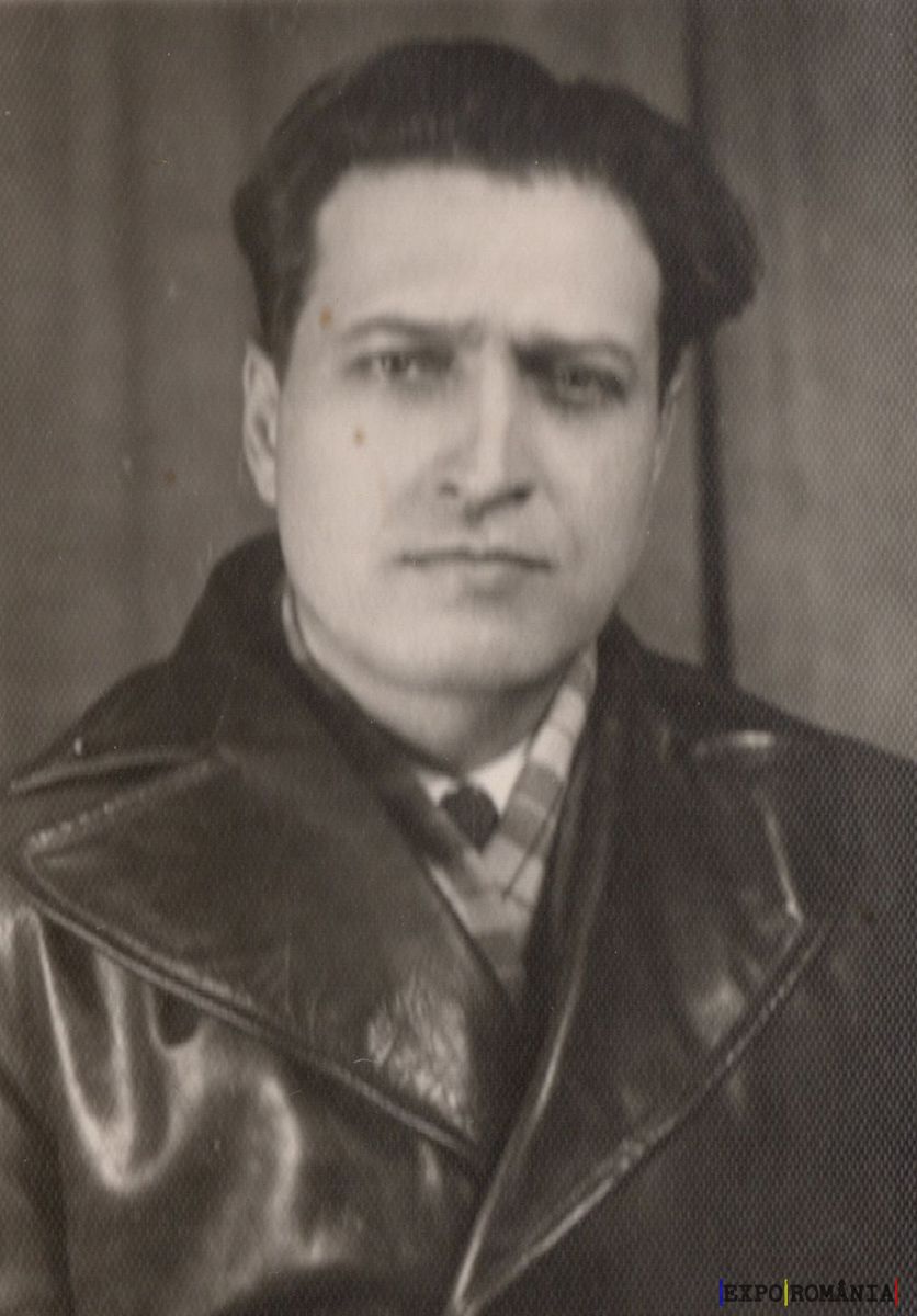 Aceasta este o fotografie în format alb-negru care înfățișează un bărbat. Acesta poartă o haină de piele și un fular în carouri. Bărbatul are părul închis la culoare, aranjat într-un stil specific și privește direct către aparat. Fundalul este simplu, fără detalii specifice. Expresia de pe chipul său este serioasă.