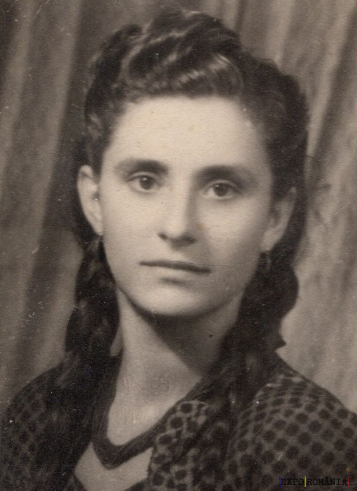 În imagine este portretul unei femei tinere. Ea are părul lung, împletit în două cozi și poartă o bluză cu model geometric. Privirea ei este calmă și fixată către cameră. Fundalul este neutru, sugerând că fotografia a fost realizată într-un studio. Poza pare să fie una veche, posibil din prima jumătate a secolului al XX-lea, având în vedere tonurile de alb-negru și stilul vestimentației.