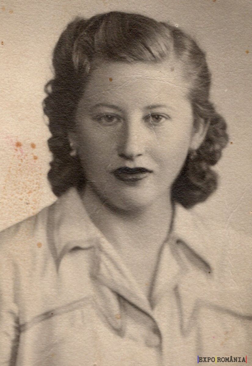 Este o fotografie alb-negru veche care înfățișează o femeie. Femeia poartă o bluză cu guler și are părul aranjat în bucle. Chipul său este serios și este îndreptat direct către cameră. Fundalul este simplu și neutru, fără elemente distinctive. Fotografia pare să fie un portret formal, probabil realizat în prima jumătate a secolului 20.