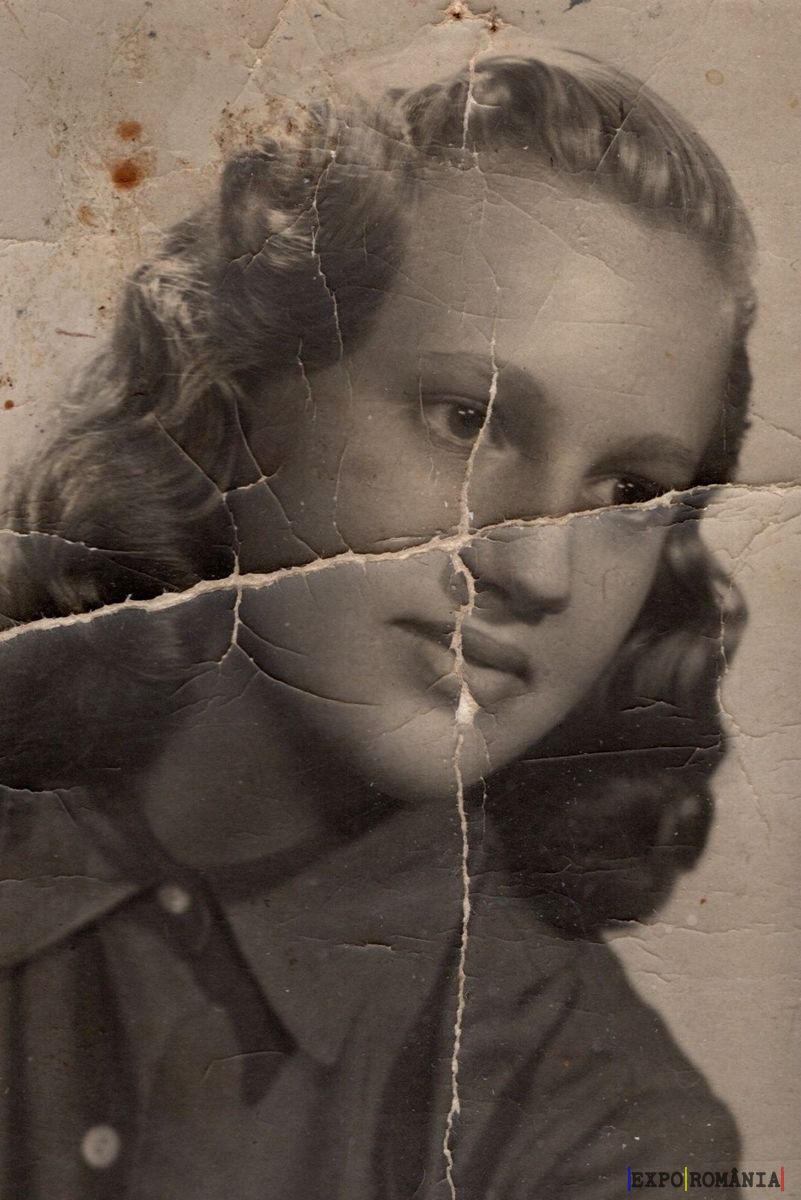 Imaginea prezintă o fotografie veche, alb-negru, a unei persoane. Fotografia este deteriorată, având o fisură verticală care separă în două partea feței și o fisură orizontală care traversează centrul imaginii. Persoana din imagine are părul ondulat și lung până la umeri, iar trăsăturile sale faciale sunt clar vizibile. Poartă o cămașă cu nasturi. Fotografia pare să fie de epocă, sugerând că a fost capturată cu mult timp în urmă.