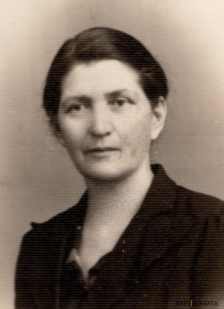 Imaginea prezintă un portret alb-negru al unei femei. Ea are părul închis la culoare, aranjat într-un mod simplu, strâns la spate. Are o expresie serioasă pe față și privește direct în obiectivul camerei. Poartă un sacou sau o jachetă, iar fundalul este simplu și nedecorat, probabil un perete sau un fundal fotografic standard. Aceasta pare a fi o fotografie veche, poate din prima jumătate a secolului XX.