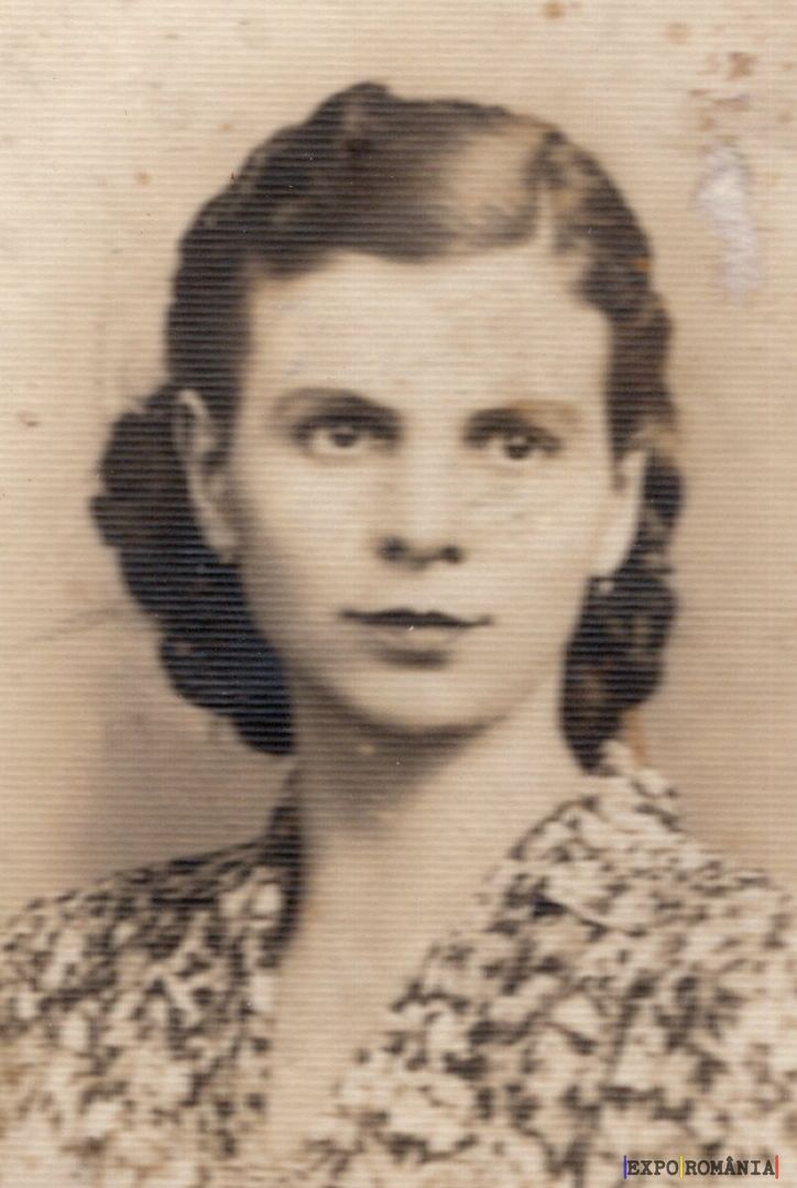Imaginea este un portret alb-negru al unei femei tinere. Are părul închis la culoare, aranjat în valuri și lăsat pe umeri. Poartă o bluză cu imprimeu floral. Expresia feței este una serioasă, neutră. Fundalul este simplu, fără detalii, evidențiind subiectul principal al imaginii. Poza pare să fie realizată într-un stil clasic, probabil dintr-o perioadă mai veche.