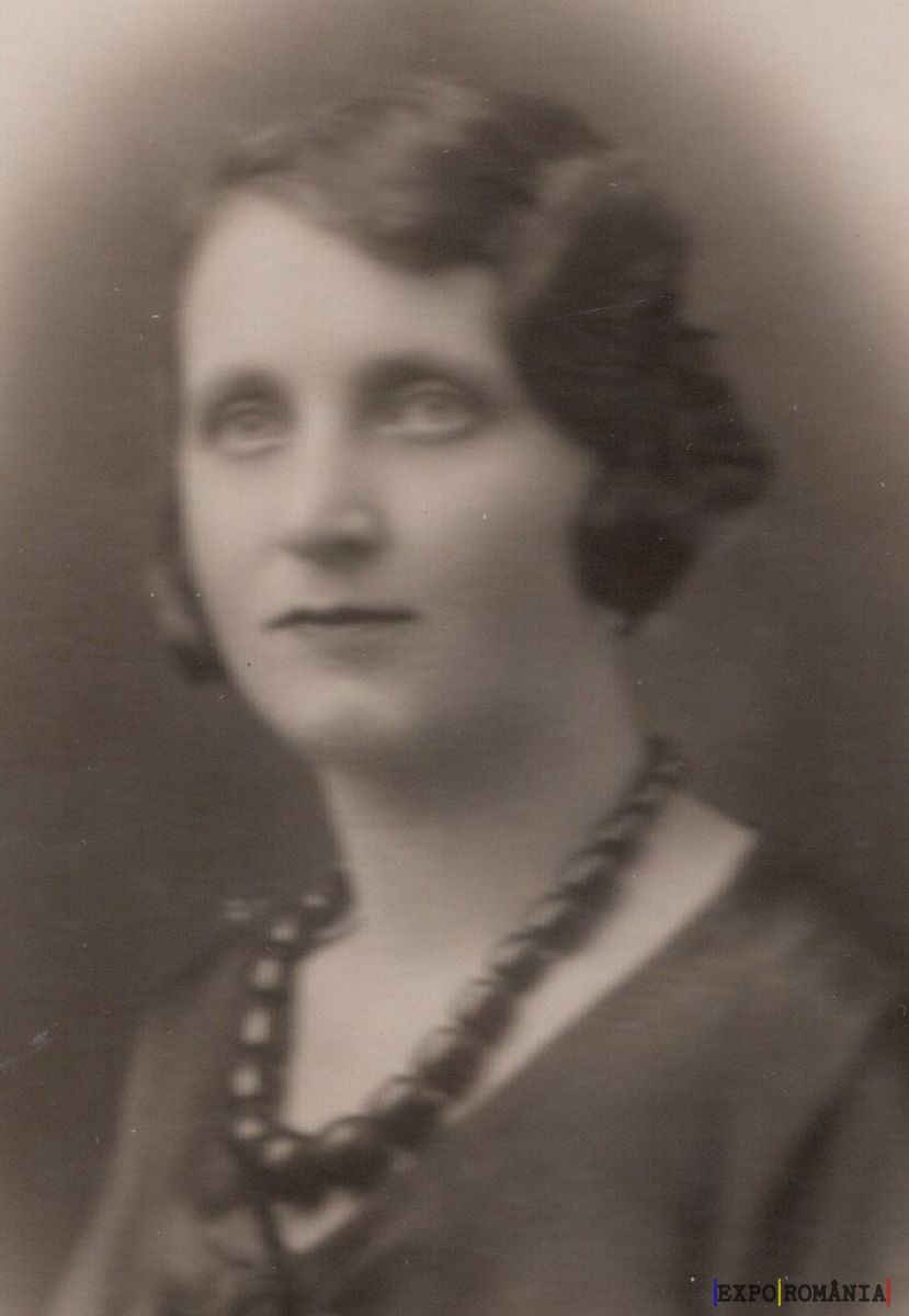 Imaginea prezintă o fotografie alb-negru a unei femei. Ea are părul scurt, ondulat și poartă un colier de mărgele la gât. Expresia feței este neutră și privirea este îndreptată ușor spre dreapta. Fundalul este estompat, punând accentul pe figura și trăsăturile femeii. Fotografia pare a fi veche, posibil din prima jumătate a secolului XX.