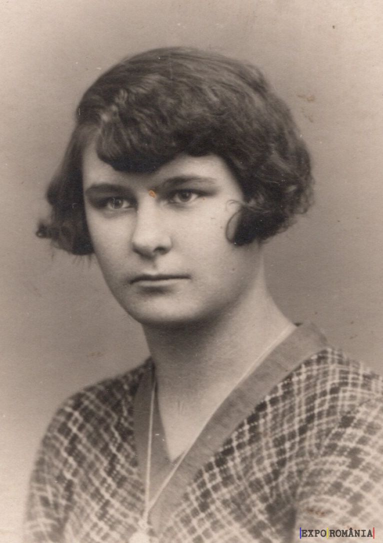 În imagine este portretul unei tinere femei, realizat probabil în alb-negru. Are părul tuns scurt și ondulat, cu o cărare pe partea stângă. Poartă o bluză cu model în carouri și un colier simplu. Fundalul fotografiei este neutru, iar expresia feței este serioasă și concentrată. Stilul fotografiei și îmbrăcămintea sugerează că aceasta ar putea fi din prima jumătate a secolului XX.
