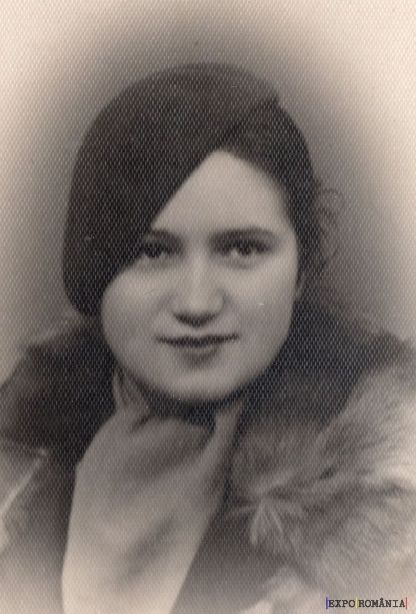 Fotografia prezintă o femeie tânără surprinsă într-un portret alb-negru. Aceasta poartă un palton cu guler de blană, oferindu-i un aspect elegant și rafinat. Părul ei este tuns scurt și pieptănat pe o parte, acoperind puțin partea dreaptă a frunții. Privirea este directă, iar expresia feței este calmă și ușor zâmbitoare, conferind imaginii un aer de serenitate și încredere. Fundalul este simplu și nu conține detalii, concentrând atenția asupra chipului și a detaliilor vestimentare ale portretului.