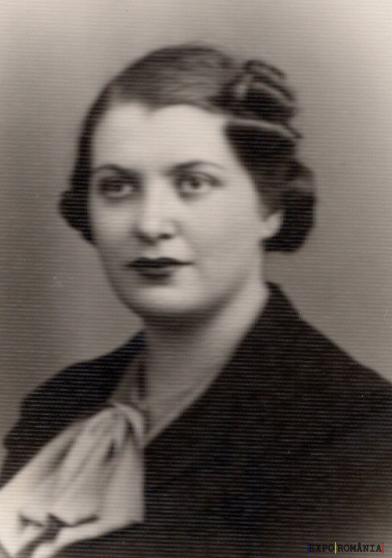 Fotografia prezintă o femeie într-un portret alb-negru. Are părul aranjat într-un stil clasic, elegant, specific perioadei de la mijlocul secolului XX. Poartă un sacou închis la culoare și o bluză deschisă la gât, legată cu o fundă. Fața sa emană seriozitate și demnitate, iar imaginea are un aspect clasic și formal. Fundalul este simplu, fără detalii, concentrând atenția asupra feței subiectului.